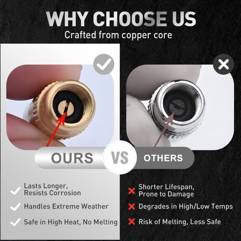 An internal gasket improves airtightness, blocks dust and moisture, and protects the valve stem.